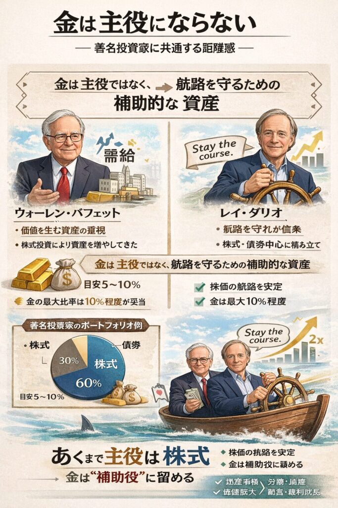 実際、長期で資産を築いてきた著名投資家の多くも、金の扱いには一貫して慎重だ。