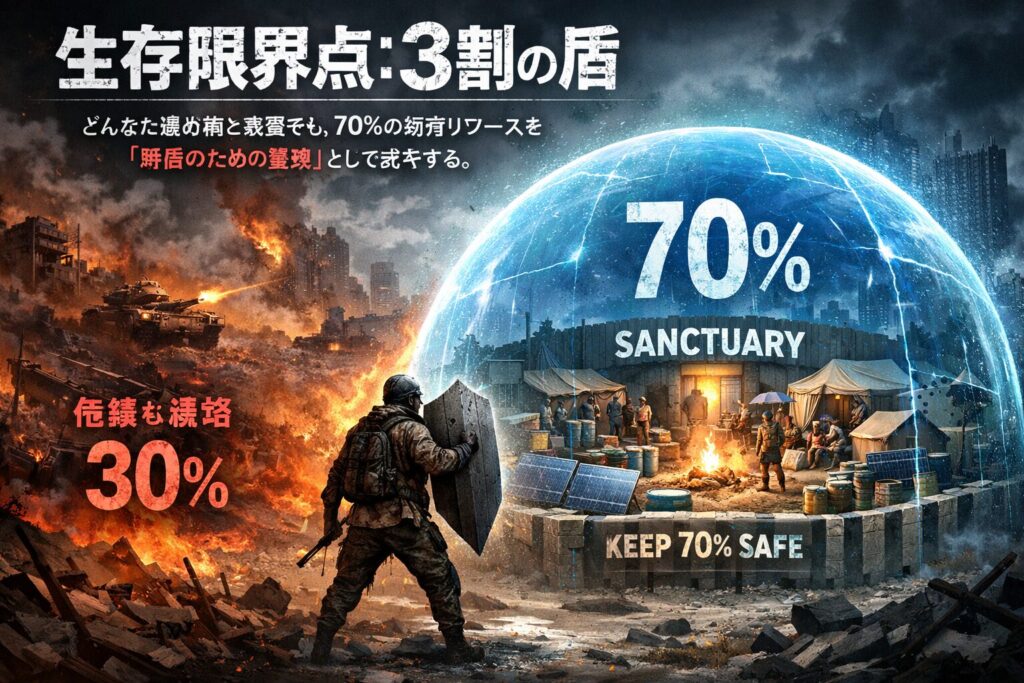 生存限界点:3割の盾 どんなに魅力的な局面でも、70%の残存リソースを「再起のための聖域」として死守する。