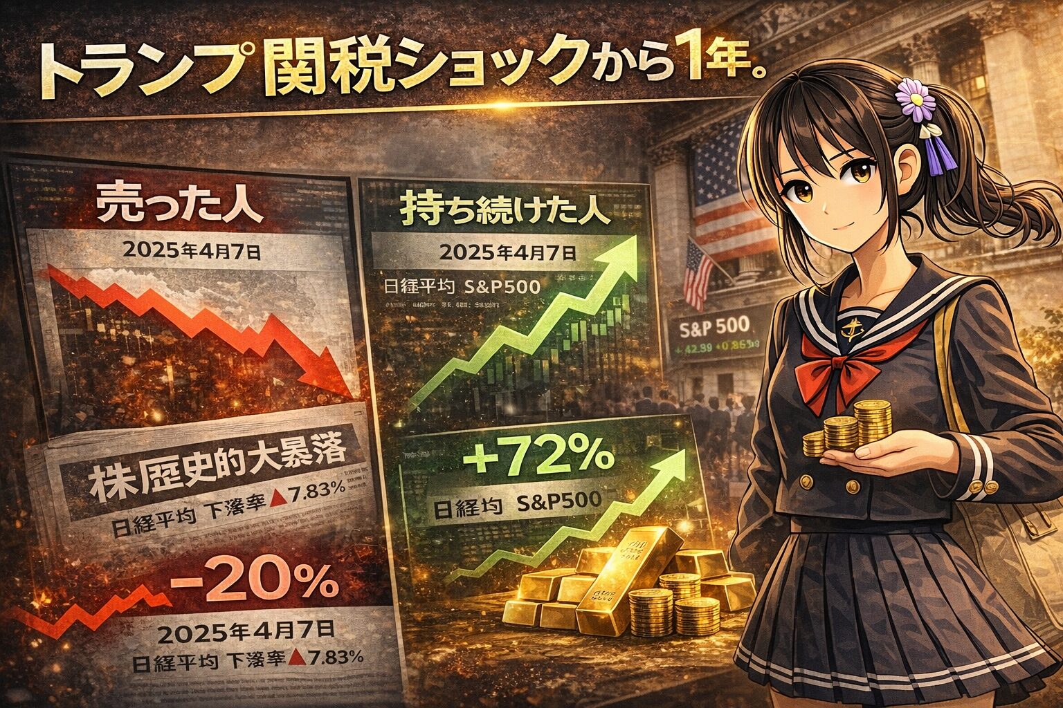 この記事では、2025年4月7日のトランプ関税ショックを起点に、主要6アセットの1年間のリターンを比較します。そして単に「持ち続ければよかった」で終わらず、なぜ持ち続けられる人と手放してしまう人に分かれるのか、その構造的な答えを探ります。