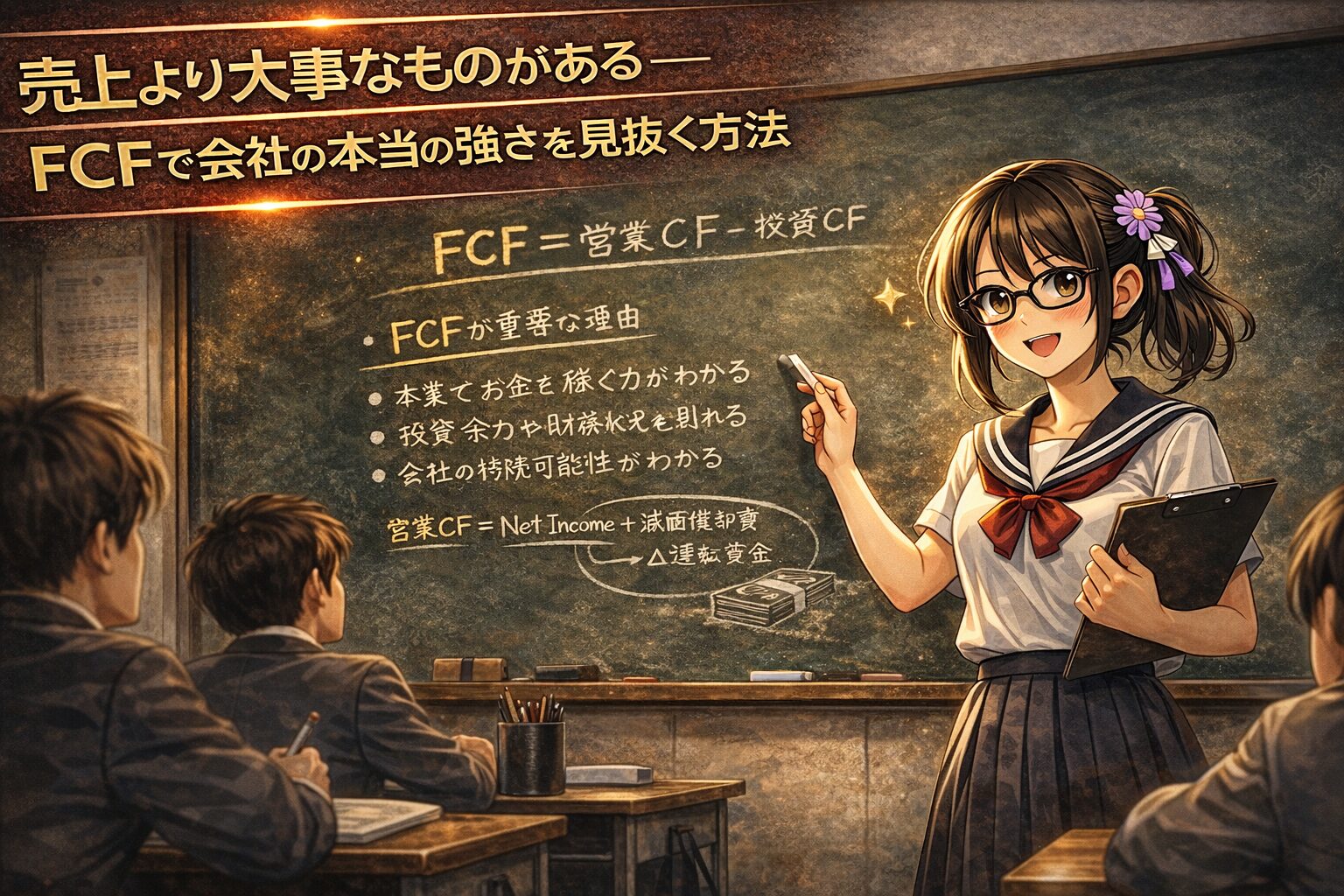 今回は、プロの投資家たちが「本当の企業力」を測るときに必ず確認する指標、フリーキャッシュフロー(FCFについて、初心者にもわかるように解説します。