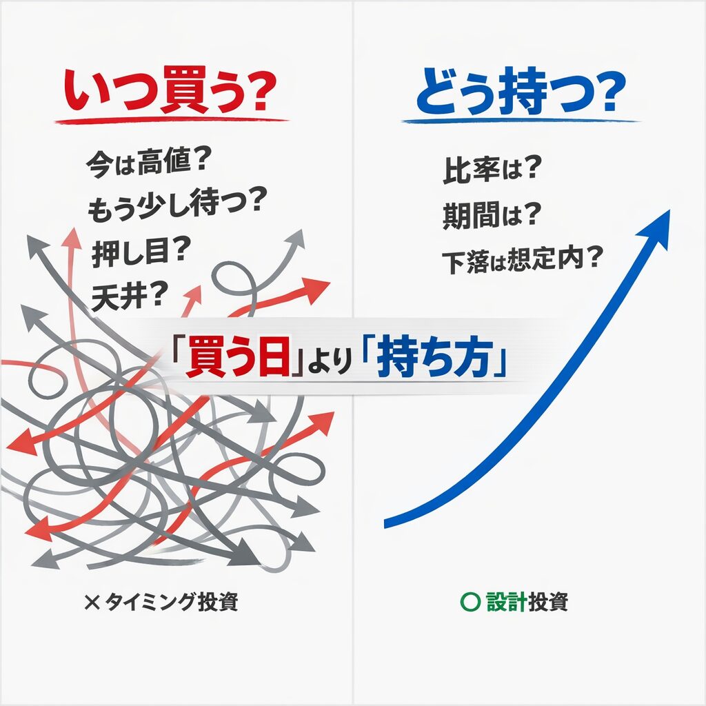 値動きを見ても冷静でいられる金額・比率から始めるのが合理的です。