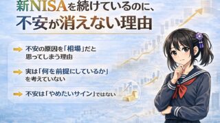 新NISAで積立を続けているのに、不安が消えない理由を整理。相場ではなく「前提」に目を向けることで、不安の正体を静かに見直します。