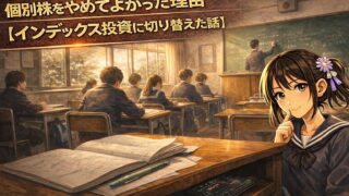 投資信託 個別株をやめてよかった理由【インデックス投資に切り替えた話】 個別株投資の精神的消耗に悩んだ筆者が、VOO・QQQインデックスETFへ完全移行した経緯を解説。株価確認ループや決算チェックの負担から解放され、時間と精神的余裕を取り戻した実体験をもとに、移行の合理性を詳しく紹介。 2026.04.19 投資信託投資全般投資戦略